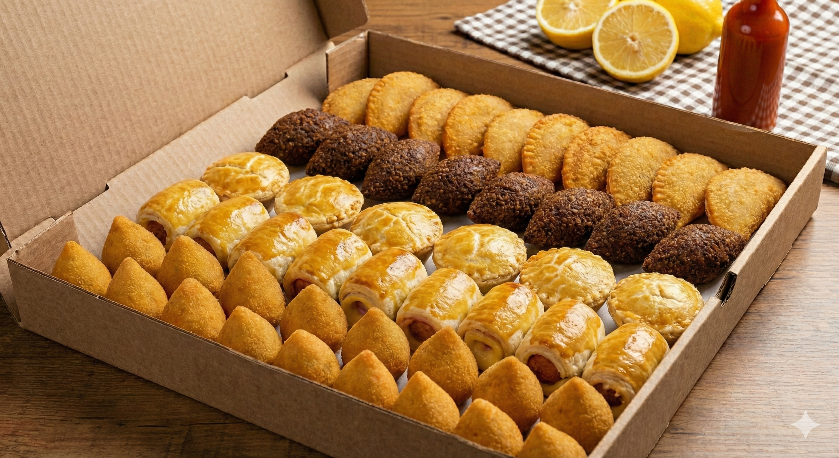 Os salgadinhos chegaram fervendo de tão quentes! A coxinha é maravilhosa.